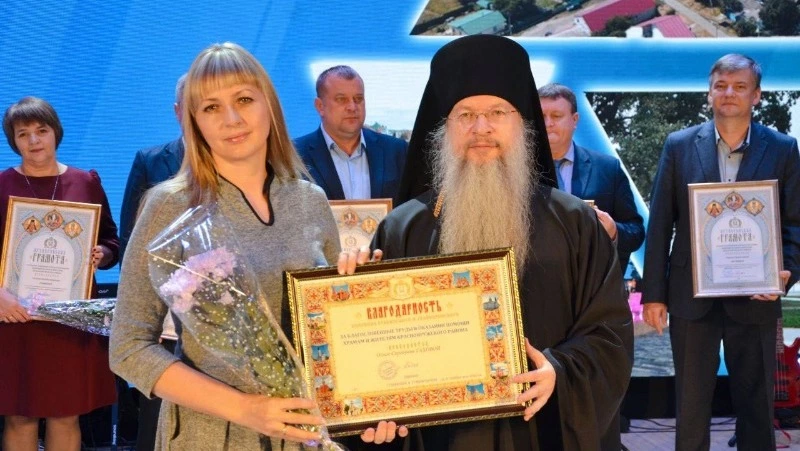 Архиерейские грамоты владыка Авель вручил директору Краснояружского зеленстроя Николаю Романенко, заместителям главы администрации округа Максиму Носову и Владимиру Безрученко, главам Вязовского, Колотиловского и Графовского сельских поселений Галине Пащенко, Татьяне Пронченко и Евгению Болгову, заместителю начальника управления капитального строительства, дорог общего пользования и архитектуры администрации округа Сергею Полищуку, а также прихожанкам храма святых бессребреников Космы и Дамиана Елене Калашниковой и Ольге Гаховой.